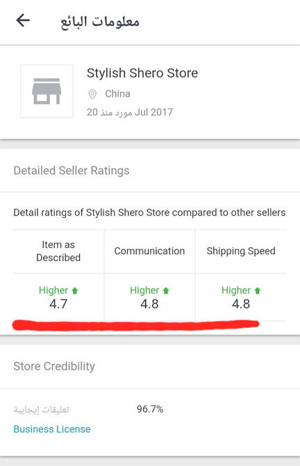 ولازم تدخلون على معلومات البائع وتشوف تقييم العملاء اذا كانت الأسهم الخضراء كلها مرتفعه والتقييم فوق 90 فالمتجر جداً حلو وموثوق👌🏻